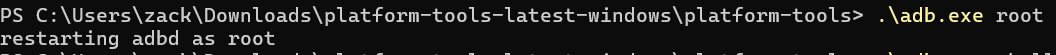 .\adb.exe root, if you clicked “Always allow” on the prompt before, you won’t be prompted on your phone again, if not you’ll need to hit allow again.
